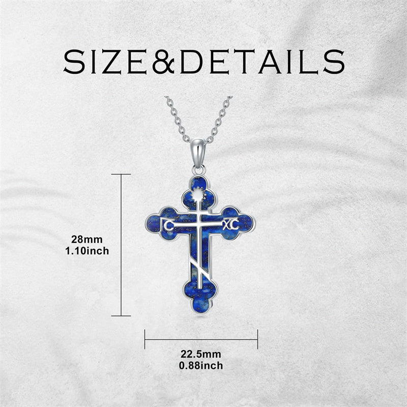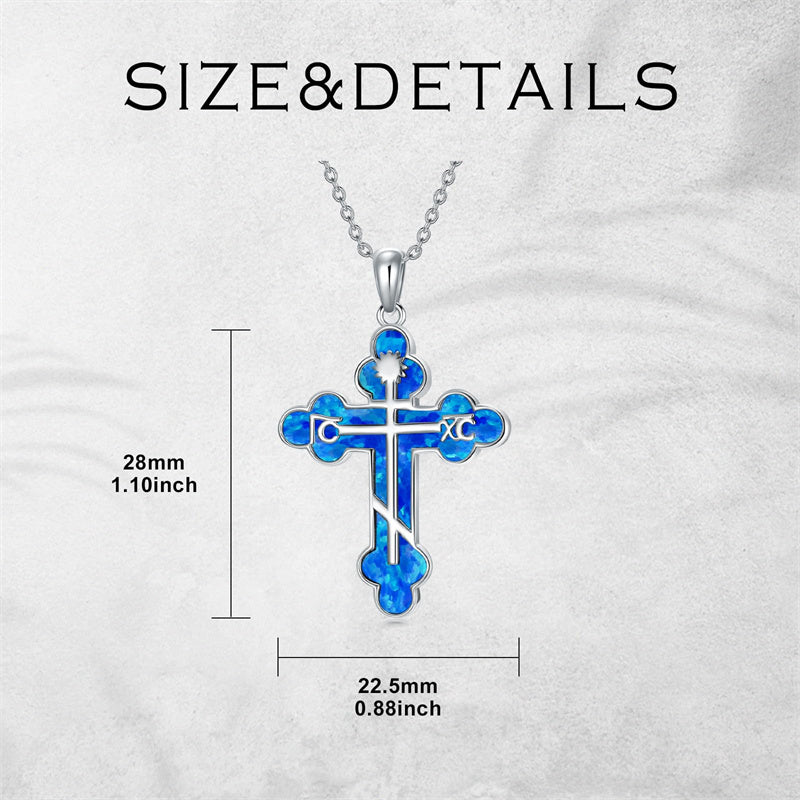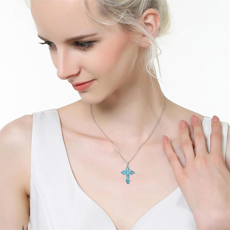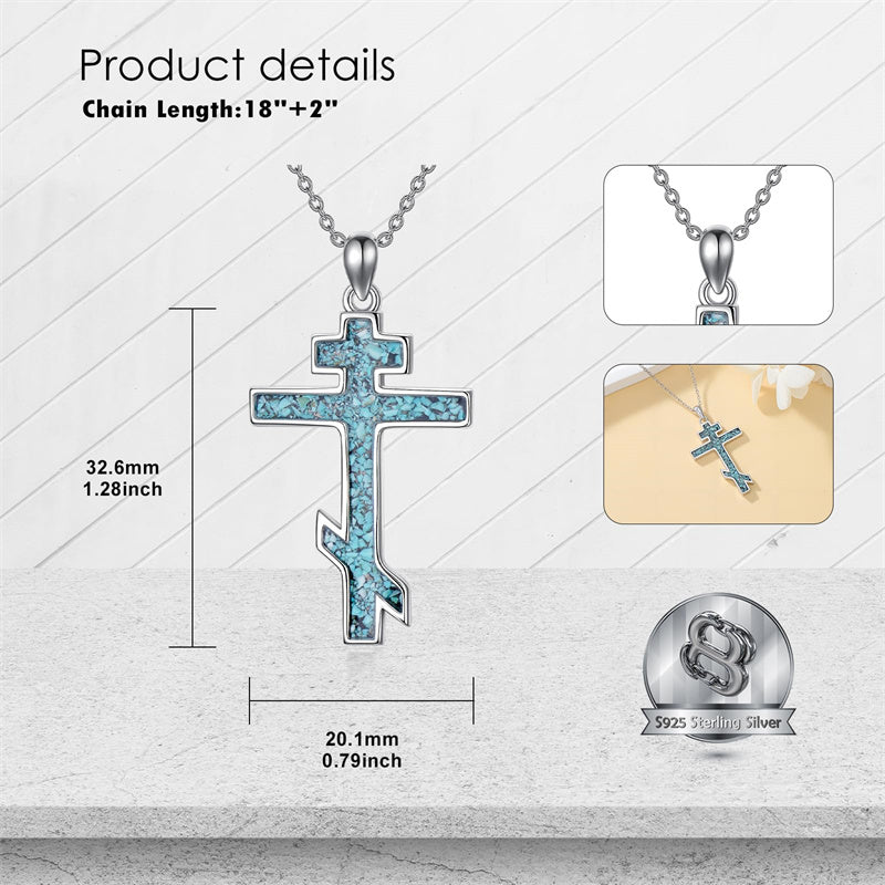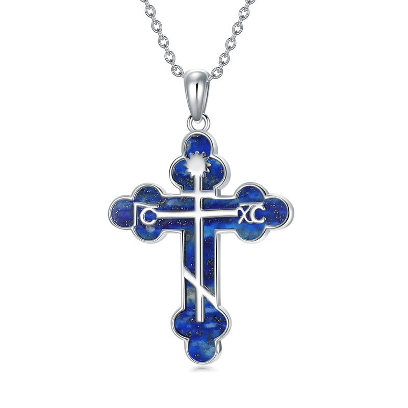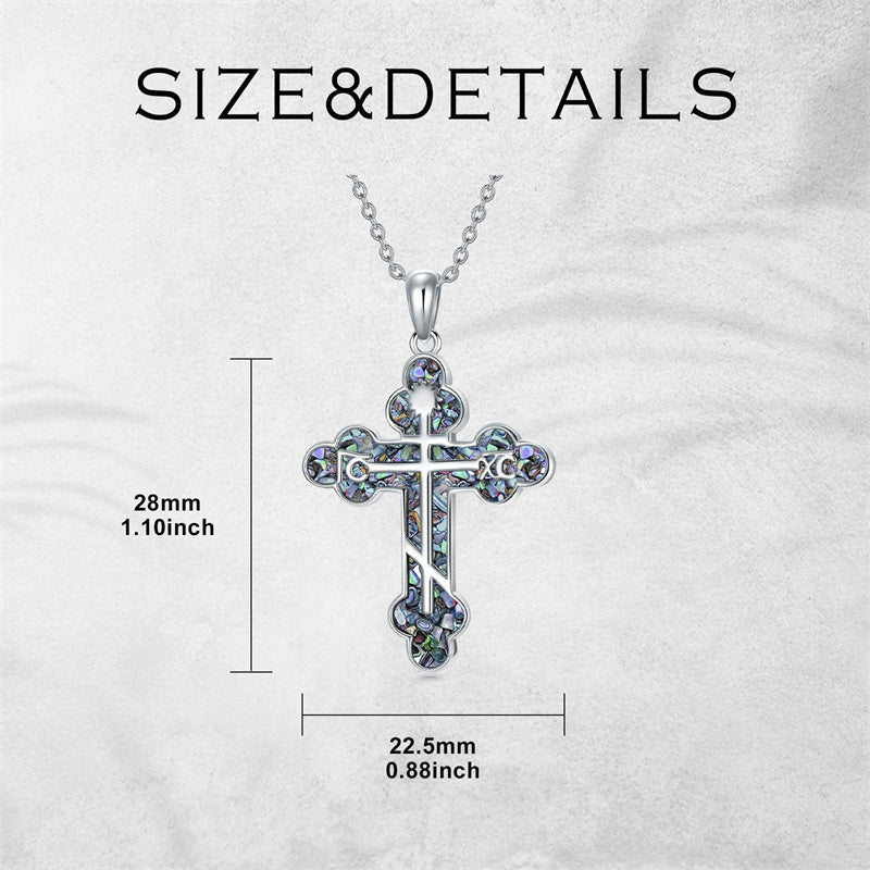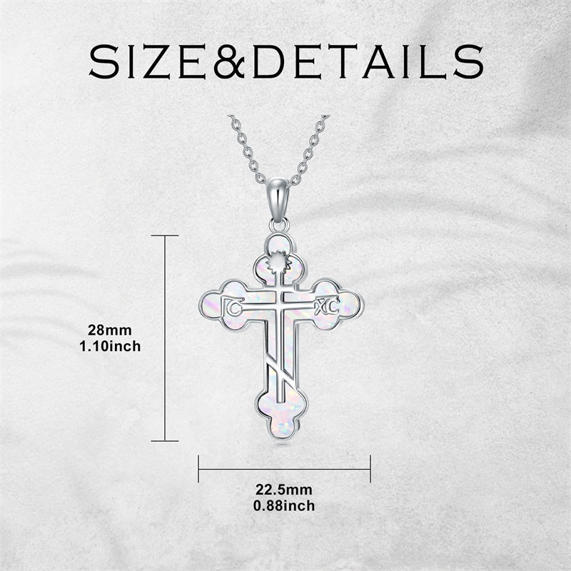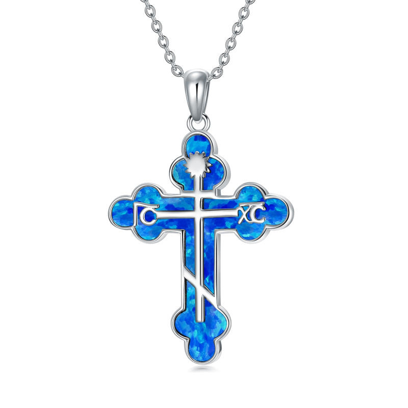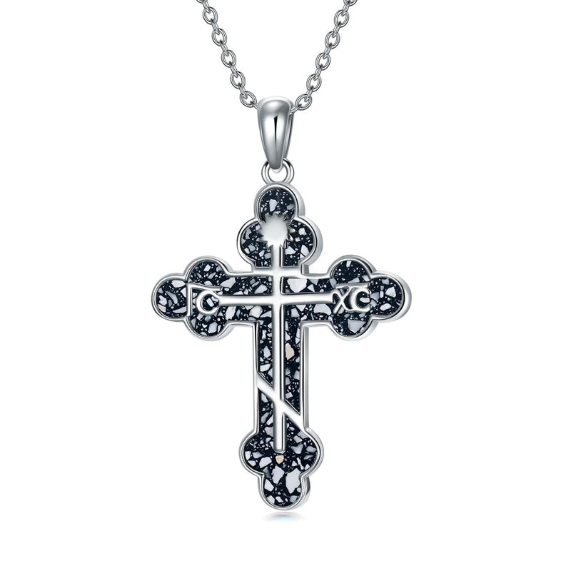 The pendant is a classic Orthodox cross design, typically featuring a cross with three horizontal beams representing the Holy Trinity. The arms of the cross are usually slightly slanted, with the lower beam longer than the others.