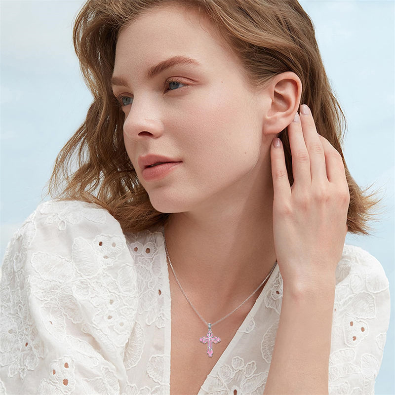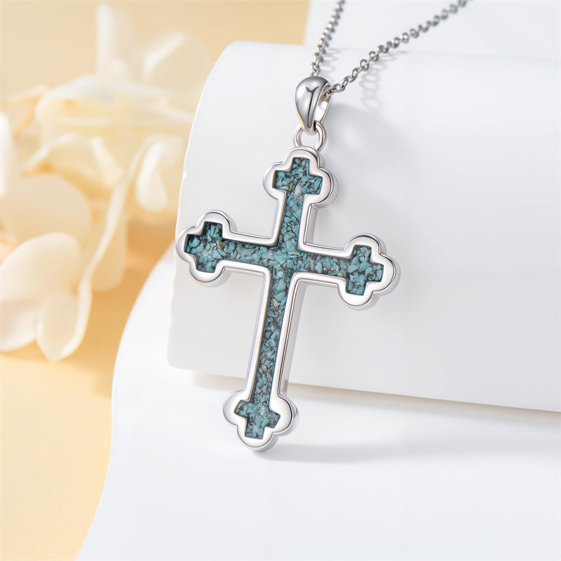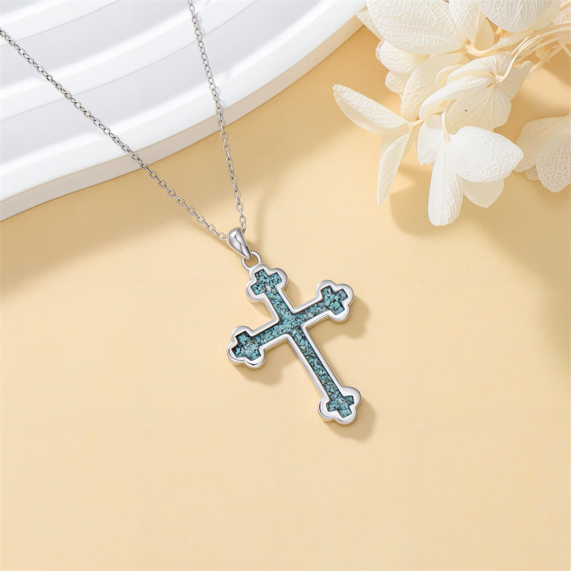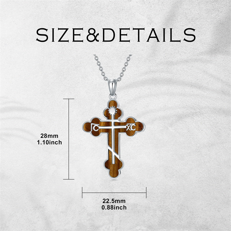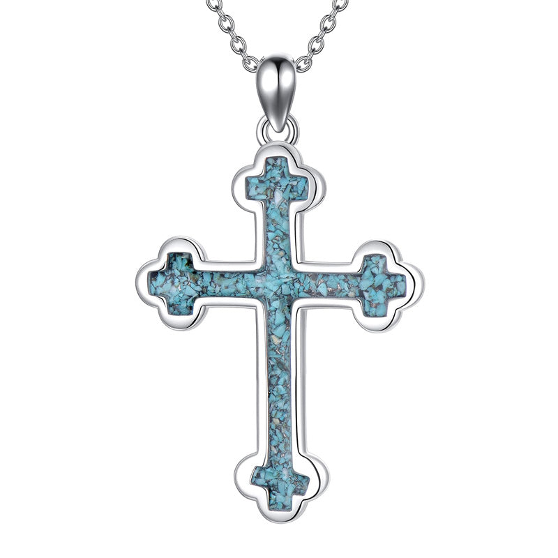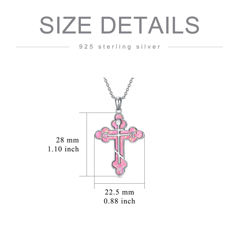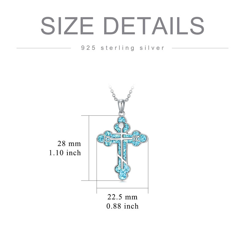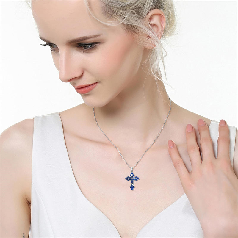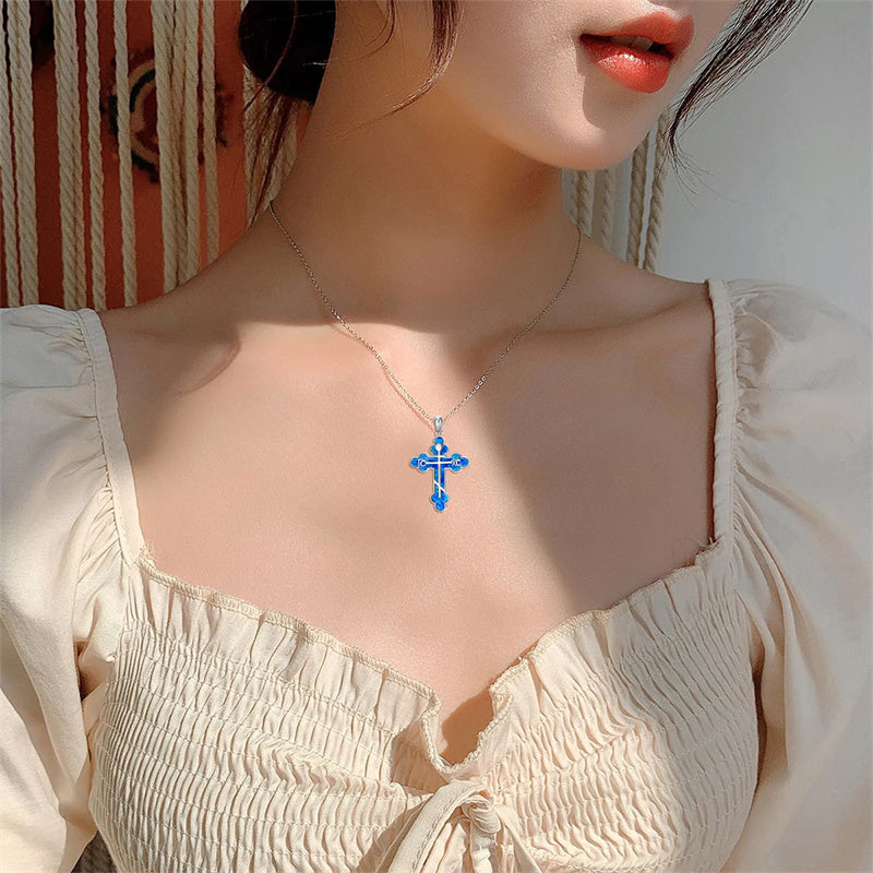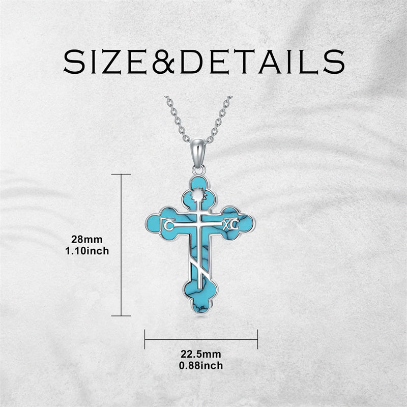 The pendant is a classic Orthodox cross design, typically featuring a cross with three horizontal beams representing the Holy Trinity. The arms of the cross are usually slightly slanted, with the lower beam longer than the others.