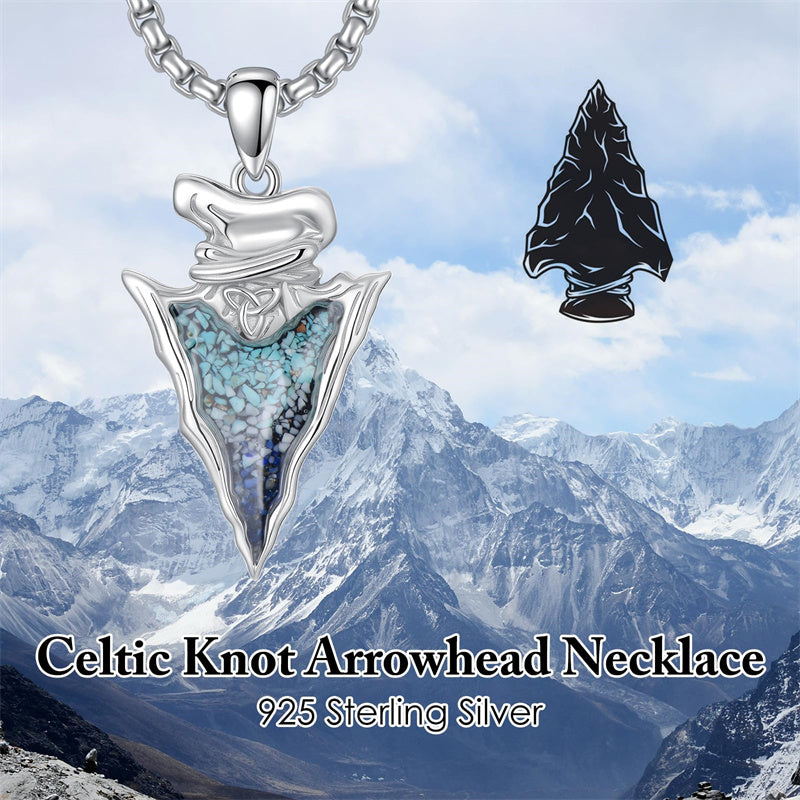 This gravel arrowhead necklace is inspired by arrows and Celtic knots. Arrowheads represent the courage to move forward, and Celtic knots represent the never-ending. The pendant is also inlaid with a variety of gravels to highlight its unique charm. I hope that wearing this arrowhead necklace will give you endless strength to move forward.