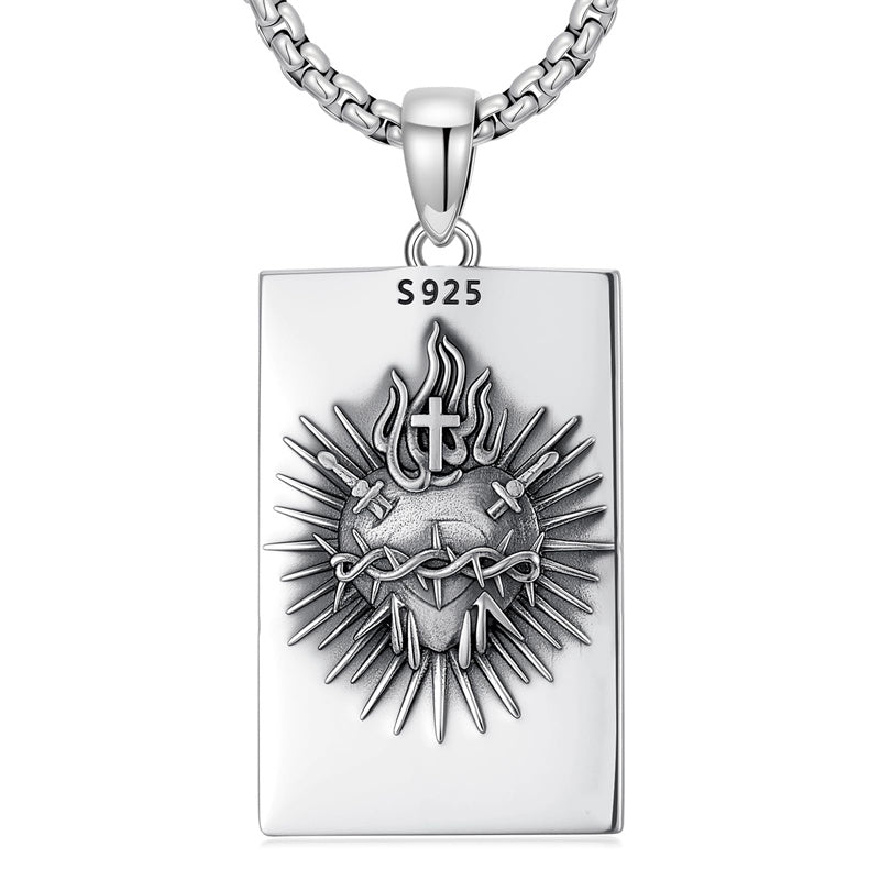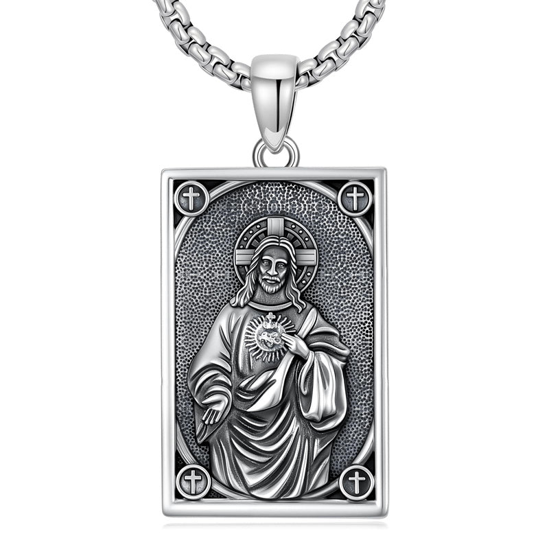 Jesus: The front of the necklace features Jesus with a halo and a serene expression. The back features the Sacred Heart, a symbol of God's love. This dual-sided design combines reverence for Jesus with the sacred meaning of the Sacred Heart. When worn, people can feel the divine presence and protection from Jesus.