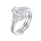 INSPIRATION DESIGN: This Moissanite Engagement Ring is a symbol of unwavering love, that’s a testament to an invariant heart for each other. Shimmering 9.5 mm, 3 carat round cut fancy blue Moissanite flanked by 3 pieces of 3.0 mm colorless Moissanites, pair with our matching vine ring enhancers completes this prefect ensemble, further accentuate its sparkle of the central stone