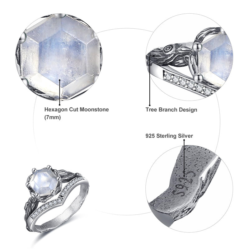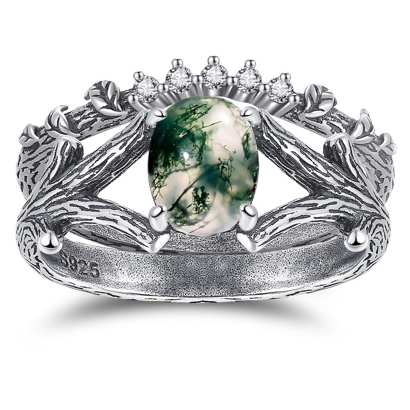 Sterling Silver Moss Agate Moonstone Branch Engagement Wedding Promise Ringfor Her