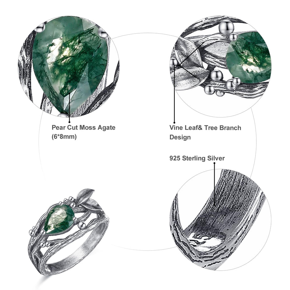 Sterling Silver Moss Agate Moonstone Branch Engagement Wedding Promise Ring for Her